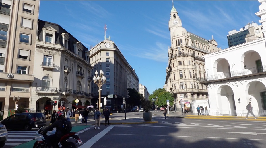 アルゼンチンの首都ブエノスアイレスにある最も重要な歴史的建造物のひとつ「カビルド」(右端)とその周辺の風景