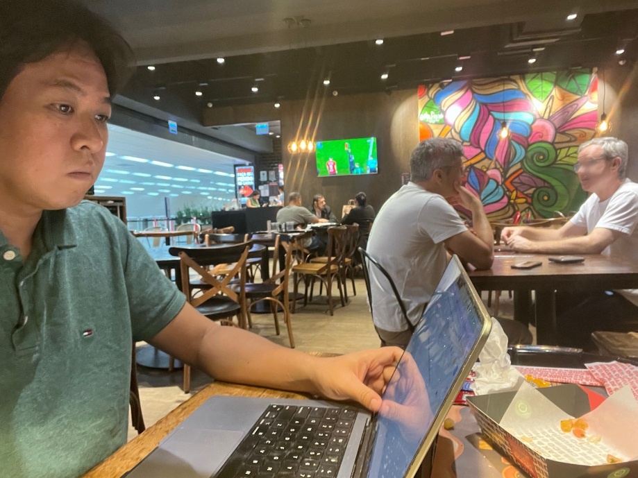 朝はブラジルでお気に入りの料理「フェジョアーダ」を楽しんだあと、フライトの6時間前には空港に到着し、空港での待ち時間4時間を利用して仕事を進めました。また、搭乗手続きやセキュリティチェックなどに必要な2時間も計画に組み込み、効率的な時間管理を行いました。ノマドワーカーにとっては空港での待ち時間を有効に使うことは、飛行機の中で睡眠を取ること同様欠かせないルーティンです。