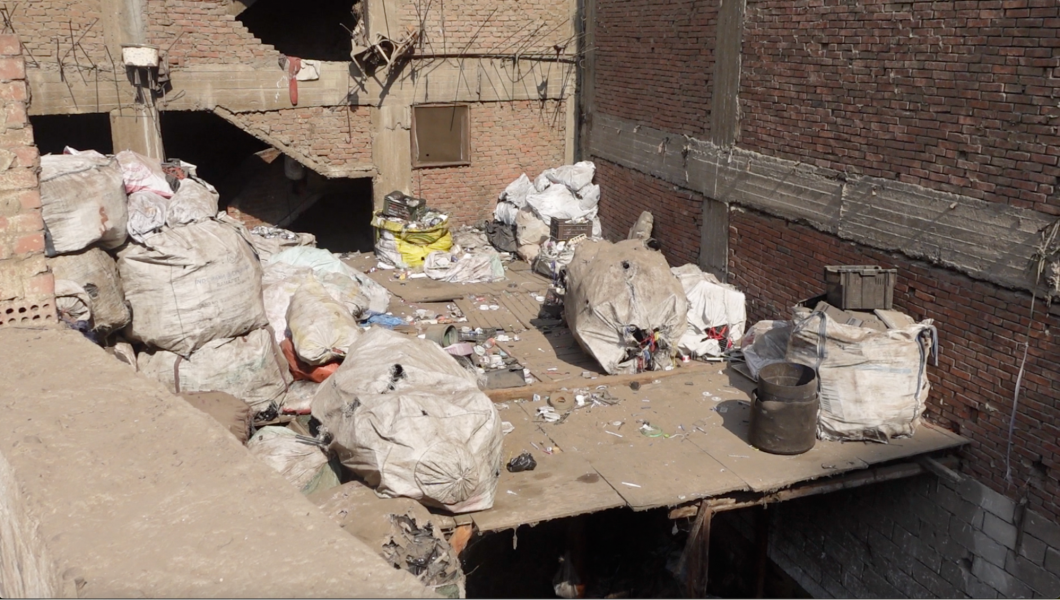 コプト教徒が担う廃棄物処理の現場。マンシェット・ナセルでは、こうしたスペースが各所に点在し、リサイクルの中心拠点となっている